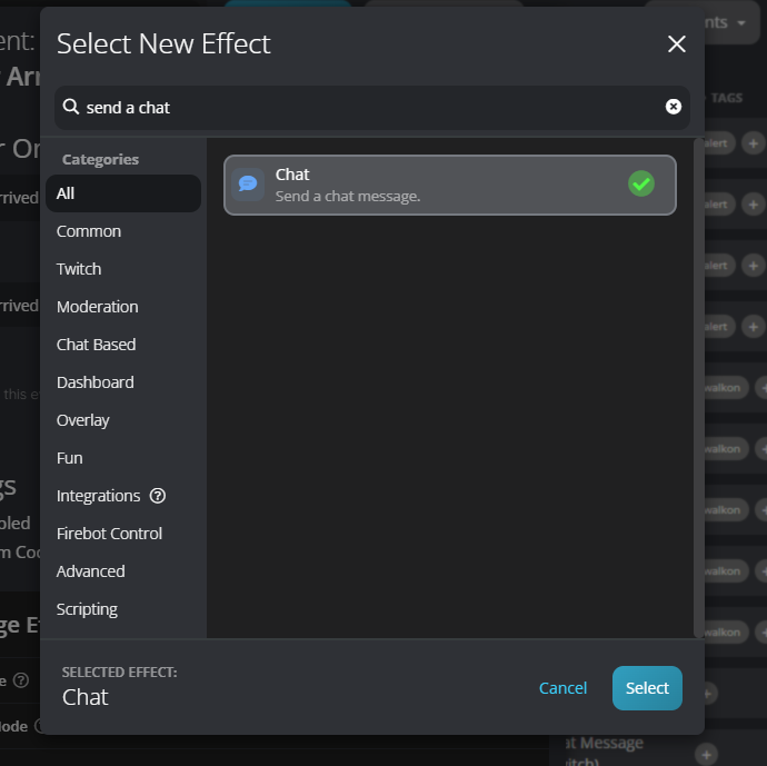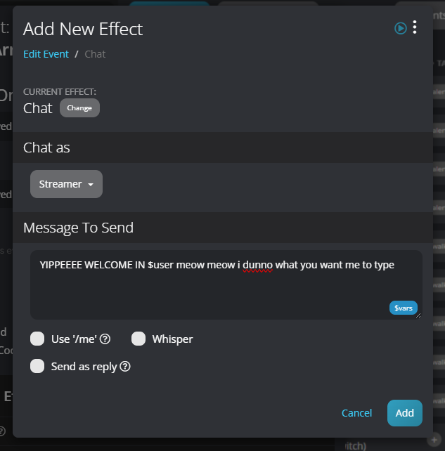 For the sake of this tutorial, I will set it up so that it triggers a chat message.