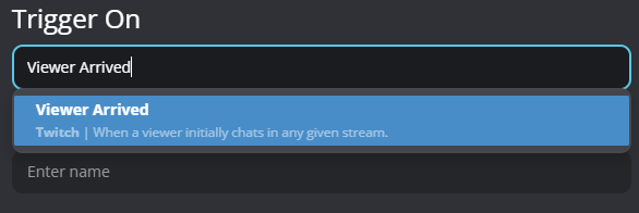 Under the “Triggered On” bar, search “Viewer Arrived”
